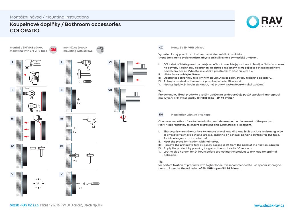 - DUAL ASSEMBLY - the anchoring kit included in the package contains parts for conventional drilling as well as the possibility of fixed gluing using 3M technology.