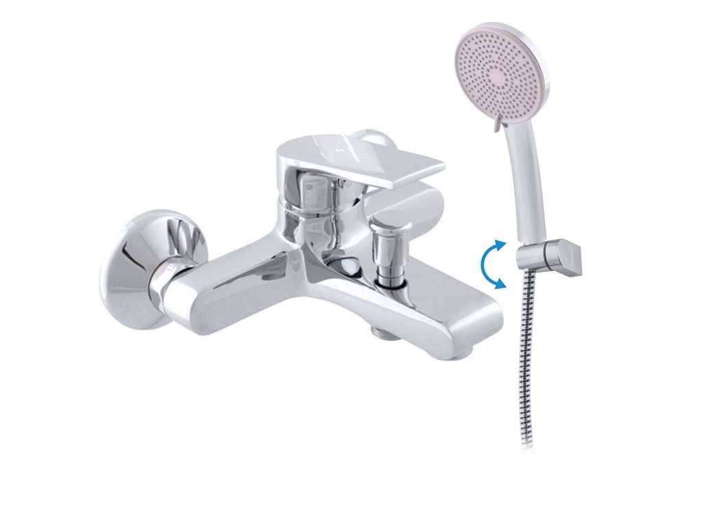 Wall mounted bath mixer with shower and swivel holder.