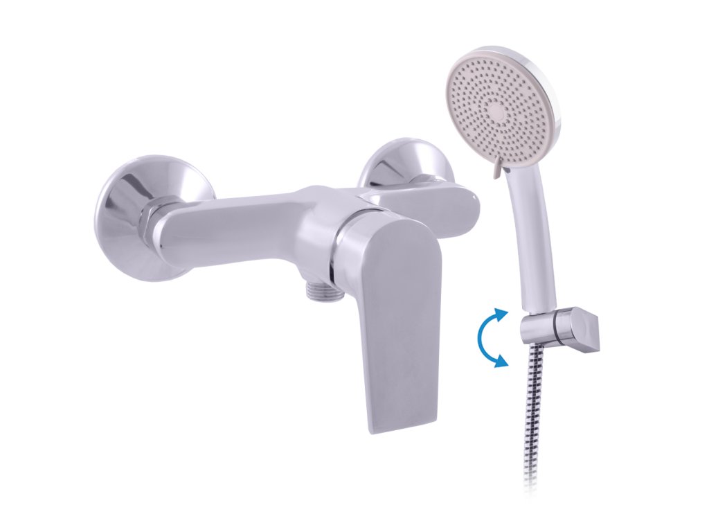 Vodovodní baterie sprchová nástěnná se sprchou a otočným držákem.