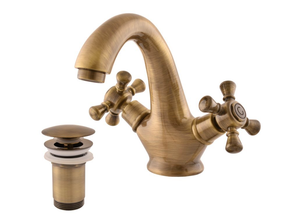 MORAVA RETRO - Basin mixer with drain, Old brass (Bronze) MK329.0SM, RAV Slezák