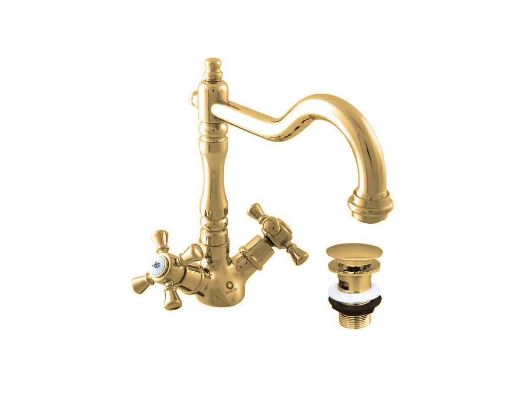 MORAVA RETRO - Basin mixer with drain, Shiny gold MK321.0/8Z, RAV Slezák