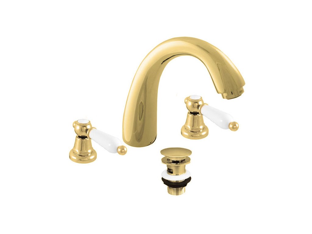 MORAVA RETRO - Basin mixer with drain, Shiny gold MK533.0Z, RAV Slezák