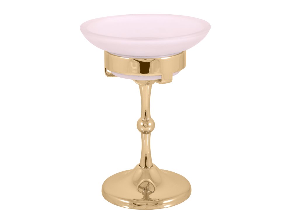 - The soap holder is made of brass with a gold finish