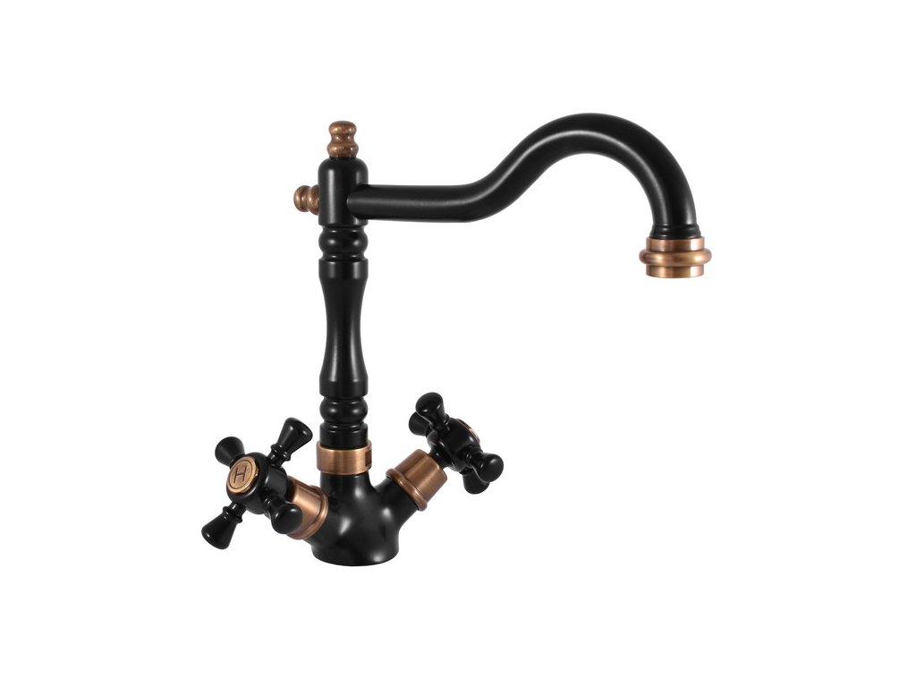 MORAVA RETRO - Sink mixer, Black matt/Old brass (Bronze) MK320.0/8CMATSM, RAV Slezák