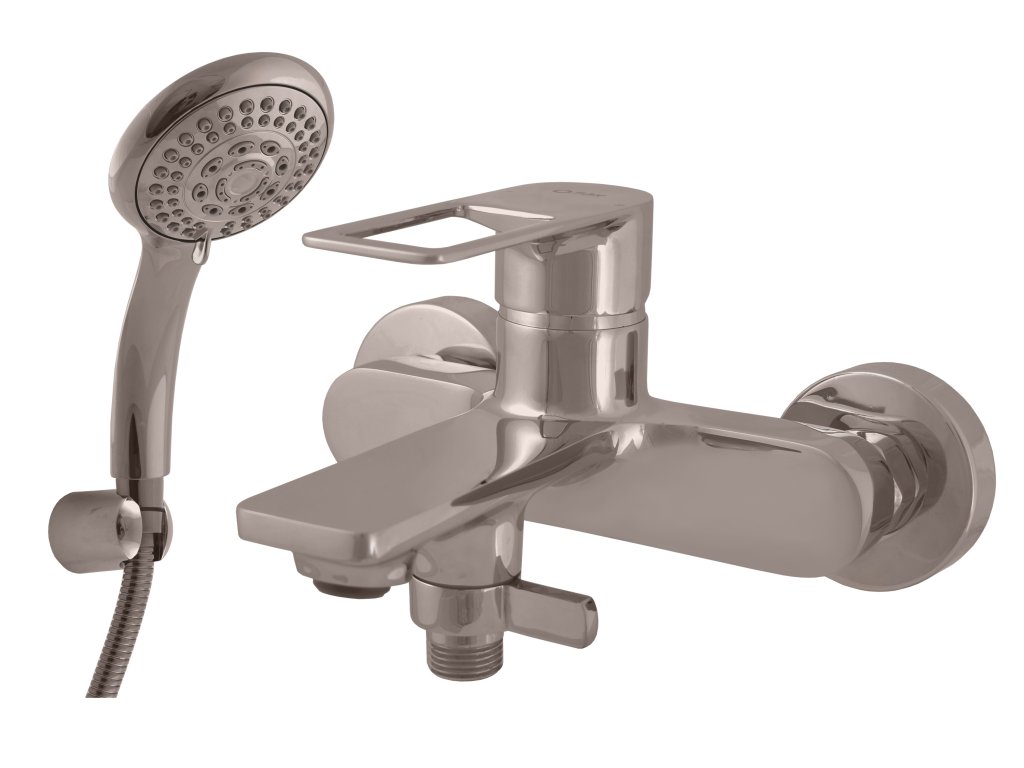 - Wall mounted bath tap with shower and fixed metal bracket.