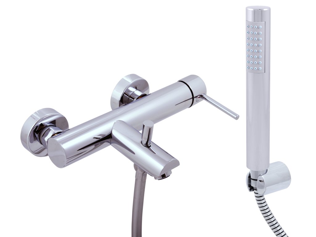 Wall mounted bath mixer with shower and fixed holder.