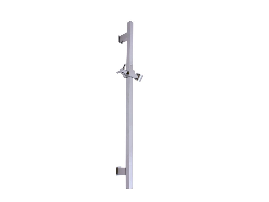 Square shower rod with sliding shower holder.