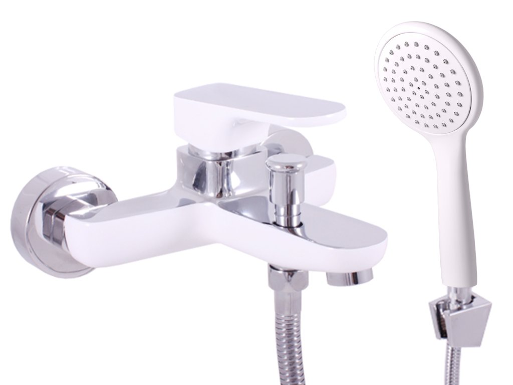 Vodovodní baterie vanová nástěnná se sprchou a pevným držákem.