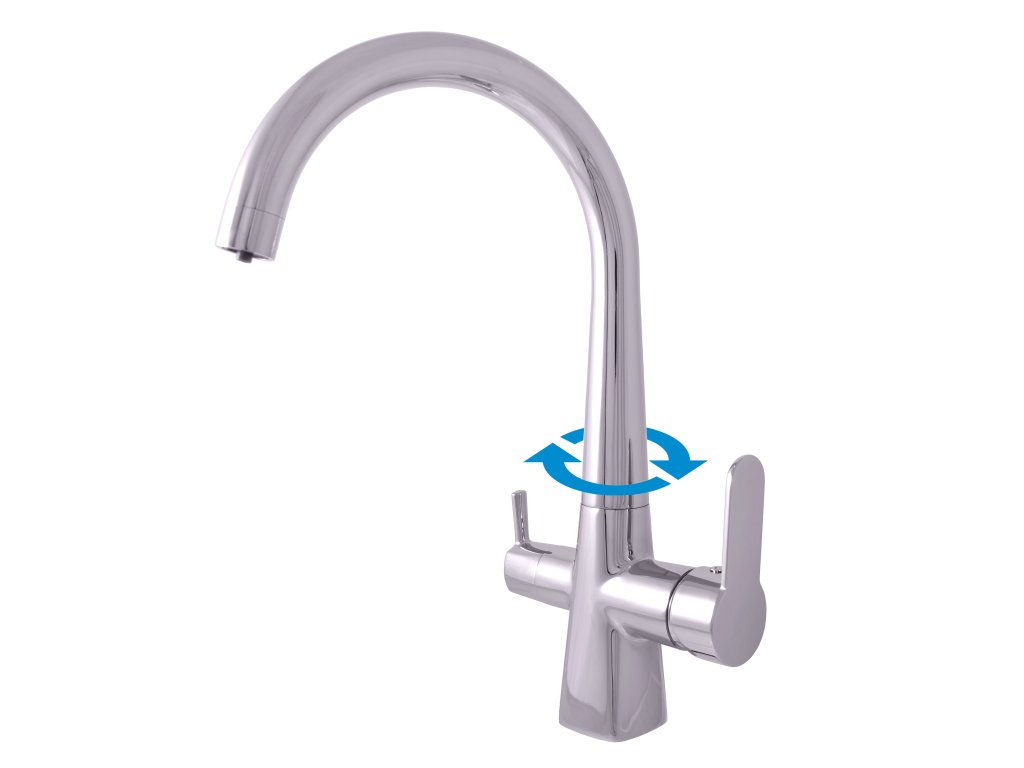 Sink mixer with swivel mouth - for two waters - drinking and utility.